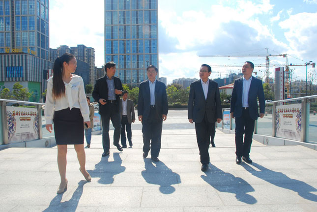 高云副廳長(zhǎng)(左二)參觀考察市文化藝術(shù)中心行政辦公區(qū),并聽取市演藝集團(tuán)黨委書記、總經(jīng)理曹利衛(wèi)(右二)匯報(bào)演藝集團(tuán)下屬單位辦公環(huán)境和有關(guān)情況,市副市長(zhǎng)馬成志(右一)、市文廣新局局長(zhǎng)許新建(左一)陪同考察。