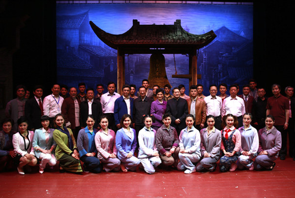 文化部部長雒樹剛、部長助理于群,中國文聯(lián)副主席楊承志、王兆海、周濤,江蘇省文化廳長徐耀新、巡視員高云,鹽城市委副書記戴元湖,市委常委、宣傳部長陳紅紅,鹽城市政府副市長鄒毅實(shí),鹽城市文廣新局局長季德榮等領(lǐng)導(dǎo)觀看了8日晚的演出。演出結(jié)束后,雒樹剛部長接見了《小鎮(zhèn)》主創(chuàng)和演職人員,并給予高度評(píng)價(jià)。