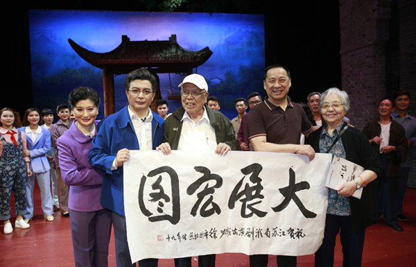 雒樹剛部長在講話中指出,看完《小鎮(zhèn)》以后,感覺到這部戲真是編得好,改得好,可以說有很強(qiáng)的故事性,也有很強(qiáng)的歷史性,而且寓教于樂,貼近生活,貼近群眾。大家凡是看了的無不為你們鼓掌喝彩,說明這部戲吸引人、感染人,而且群眾愛看這部戲。這部戲講了一個(gè)非常好的故事,通過一個(gè)有著悠久歷史的小鎮(zhèn),講了這個(gè)小鎮(zhèn)修心修德的古風(fēng),弘揚(yáng)了積善積德、誠實(shí)守信的傳統(tǒng)美德。弘揚(yáng)了真善美,鞭撻了假惡丑,就像這部戲里鄧麗君的那首歌唱得一樣,小城故事多,充滿喜和樂,可以說是人間真善美,小鎮(zhèn)都包括。這部戲有很強(qiáng)的懸念感,環(huán)環(huán)相扣,使人們不由自主地跟著劇情走,有很多是意料之外,又情理之中。所以這部劇編得好,作曲也好,運(yùn)用了很優(yōu)美的曲調(diào)。我特別要指出的是演員演得好,我們?nèi)w演員的都有十足的精氣神,都十分的投入,充分展現(xiàn)了藝術(shù)實(shí)力,尤其是兩位主角把人物刻畫得惟妙惟肖,十分細(xì)膩,十分生動(dòng),十分深刻。這部戲中,你們把淮劇獨(dú)特的風(fēng)格、獨(dú)特的韻味都表現(xiàn)得淋漓盡致,引人入勝,所以我向你們的精彩演出表示祝賀和感謝。淮劇是我們的地方劇種,現(xiàn)在我們的地方戲恰逢我國振興戲曲的極好機(jī)遇,特別是習(xí)近平總書記在文藝工作座談會(huì)上的發(fā)表的重要講話,中央先后出臺(tái)了繁榮文藝、振興戲曲的多項(xiàng)政策。這次江蘇地方戲來京演出,不僅是淮劇,還有江蘇的其他優(yōu)秀劇種,在此我表示祝賀并寄予期望,希望大家能創(chuàng)作更多的優(yōu)秀作品。像《小鎮(zhèn)》這樣的優(yōu)秀作品要多創(chuàng)作、多演出,為我國振興戲曲工作作出示范,祝大家今后多生產(chǎn)出優(yōu)秀作品,為振興戲曲作出更大的貢獻(xiàn),讓我們的淮劇及江蘇各種地方戲曲都能夠結(jié)出更加豐碩的果實(shí)。